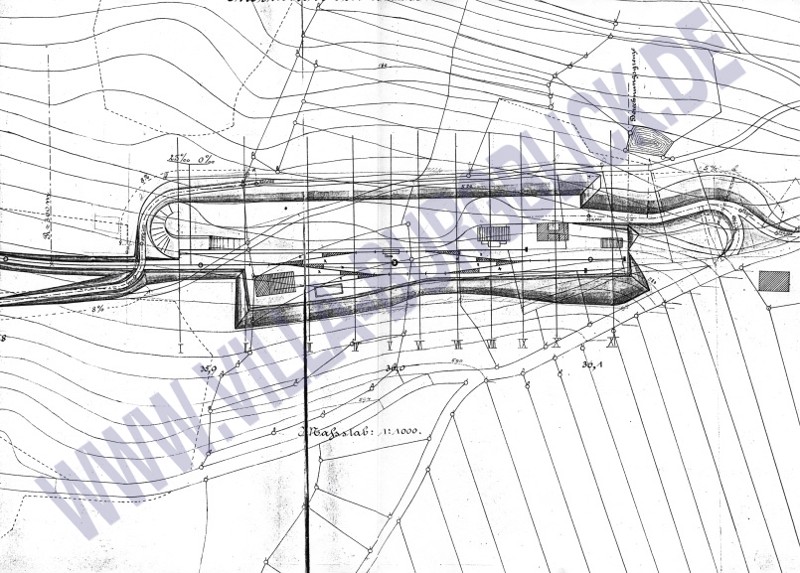 Auf dem nachfolgenden Plan ist zu erkennen, daß noch im Juni 1906 geplant war, den Bahnhof an der Staatsstraße zum Hohen Kreuz zu plazieren.